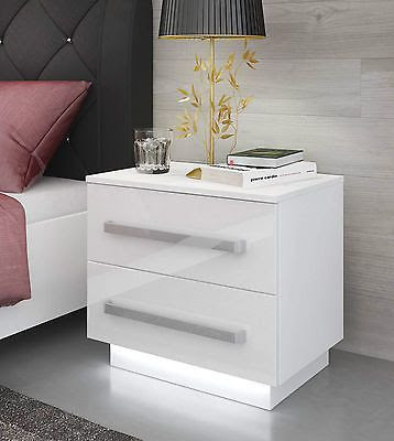 Bedside Cabinet Rita 2 Drawer Free Led High Gloss Bedroom Furniture Bedroom Night Stands White Gloss Bedroom Furniture High Gloss Furniture